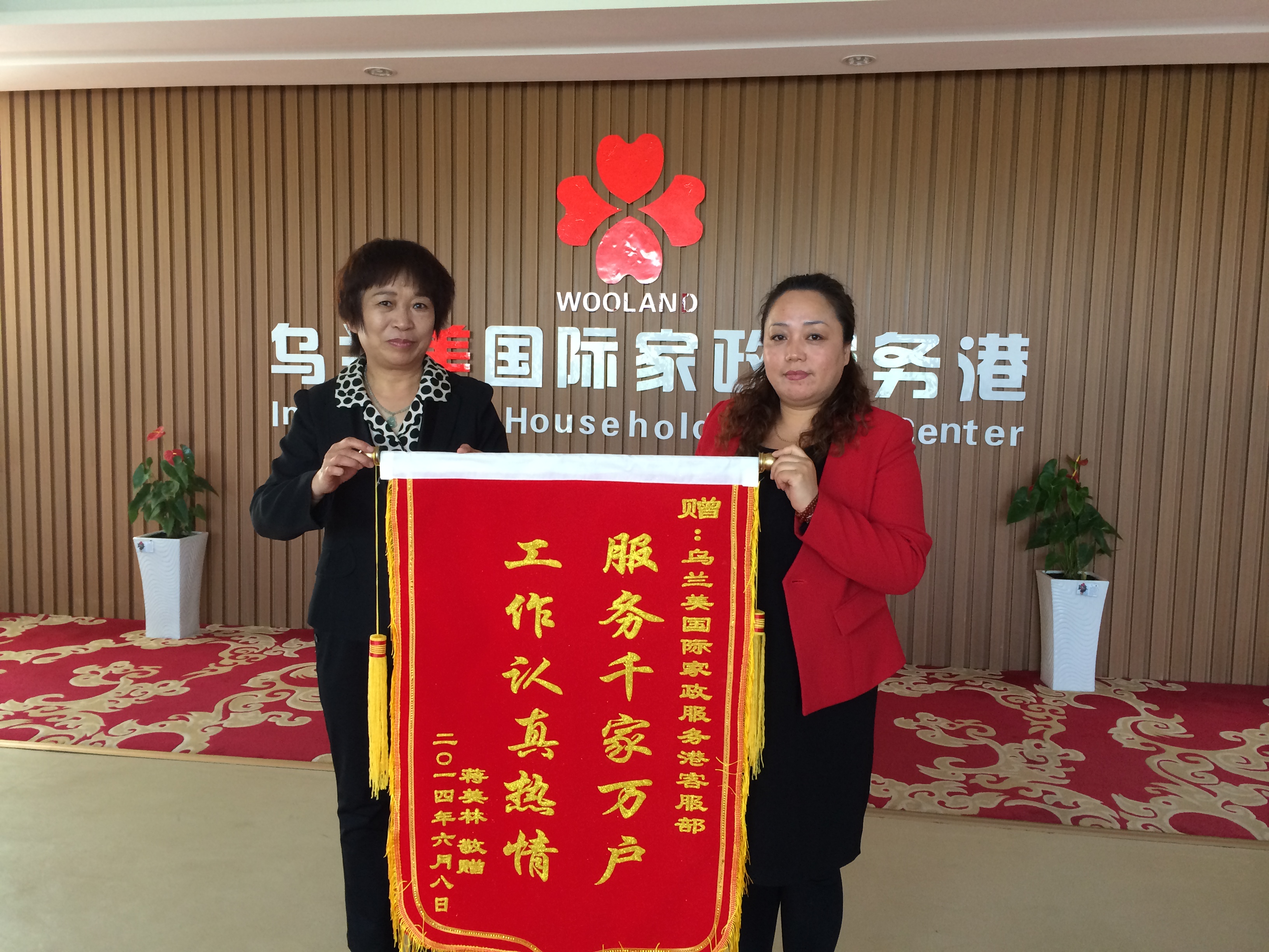 2014年6月10日,烏蘭美健康服務(wù)有限公司又收到了一面錦旗,該錦旗由客戶蔣女士贈予烏蘭美客服部,旗面書寫“服務(wù)千家萬戶,工作認(rèn)真熱情”,對客服部的工作給予了極大肯定。